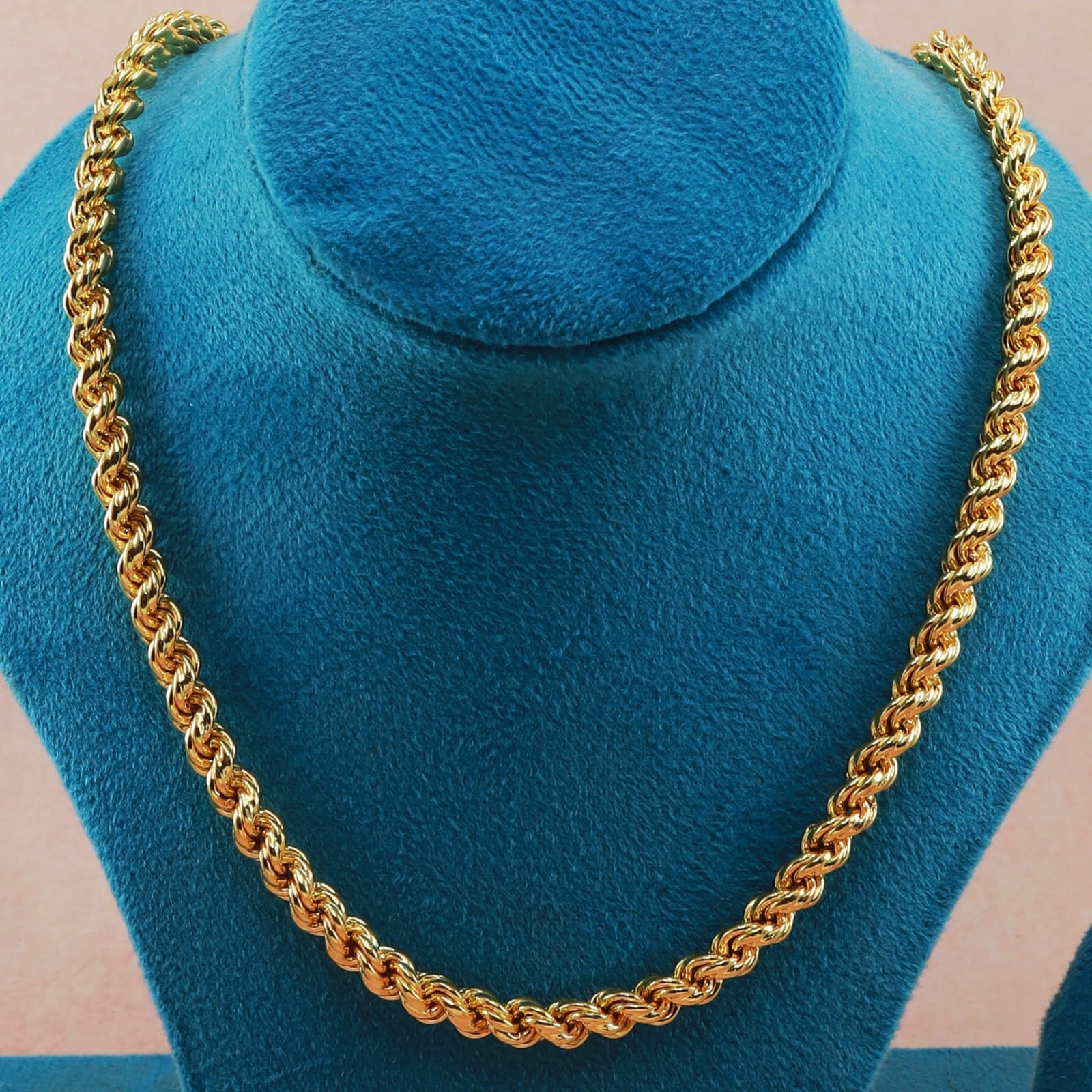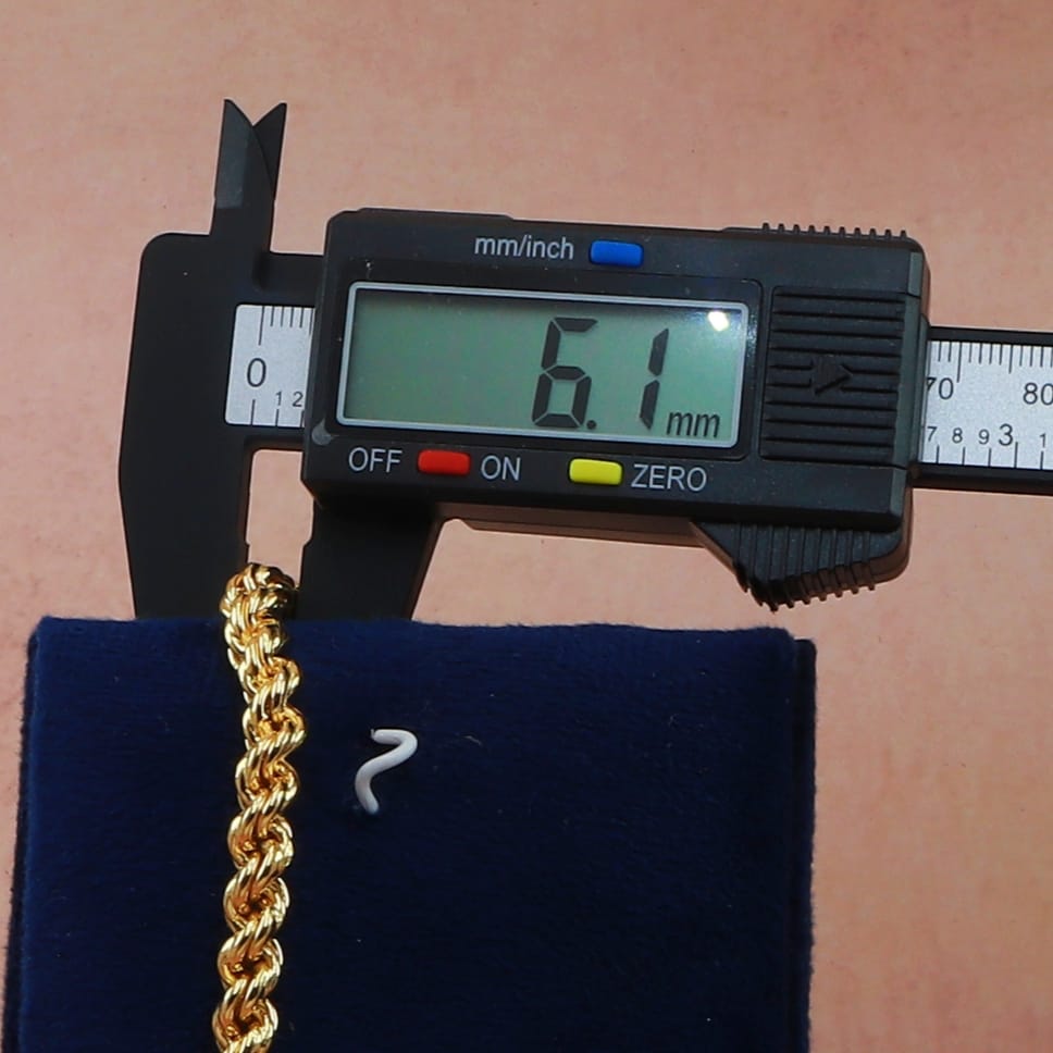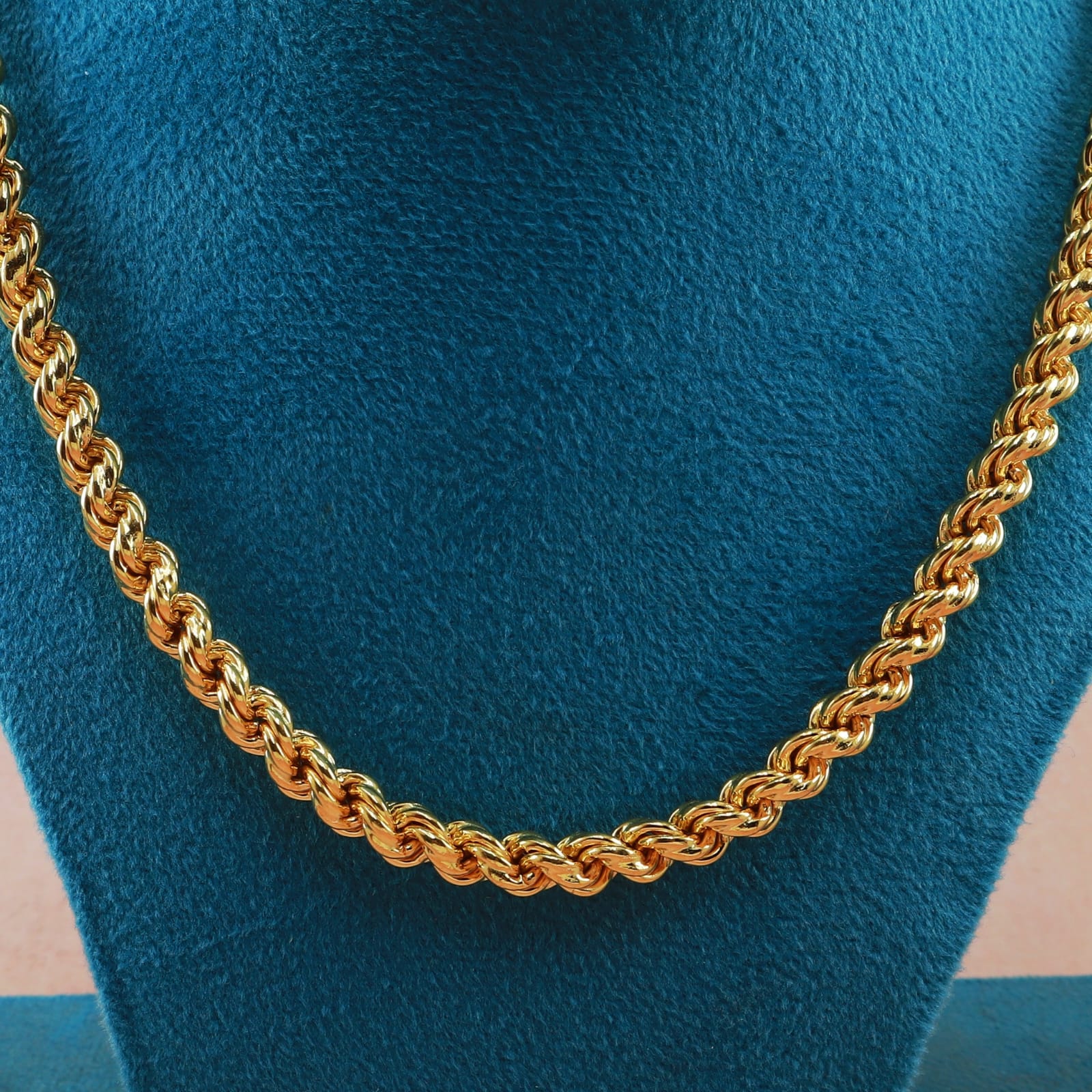 Would you like to adorn yourself with a timeless symbol of elegance and masculinity? Look no further than our 20k yellow-gold chain for men. This chain necklace, with its traditional rope design, is the ideal accessory for daily use because it is sophisticated and charming. This gold chain, measuring 6 mm in width and 20 carats pure, exemplifies fine craftsmanship that endures.
