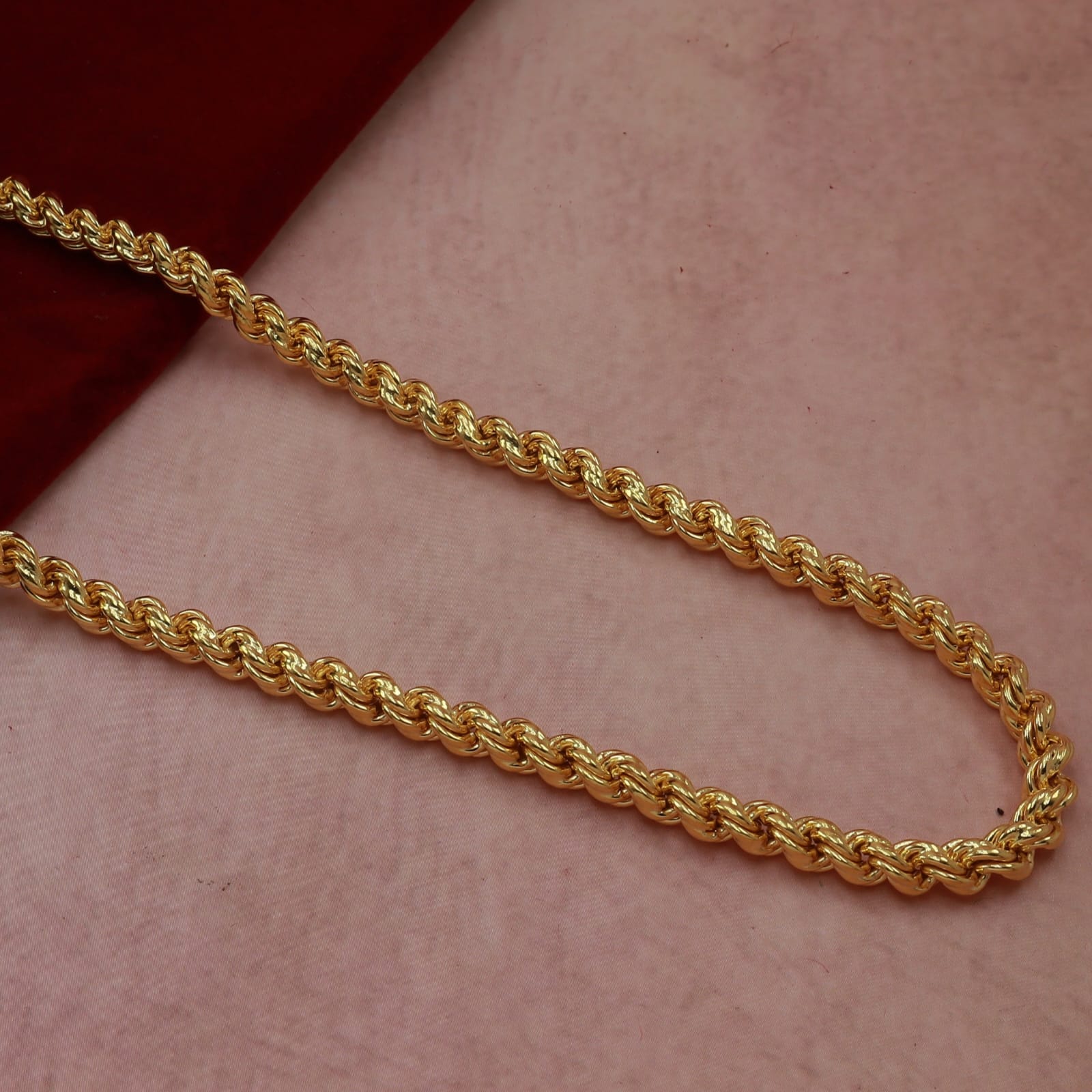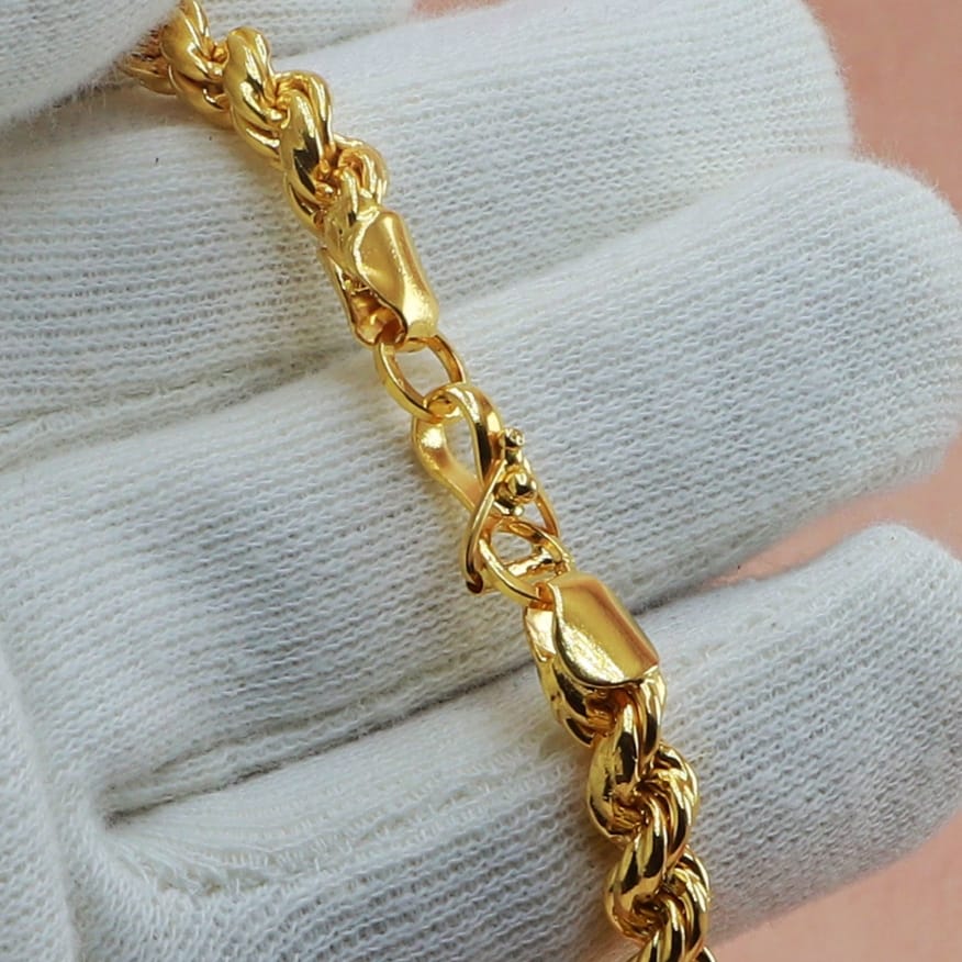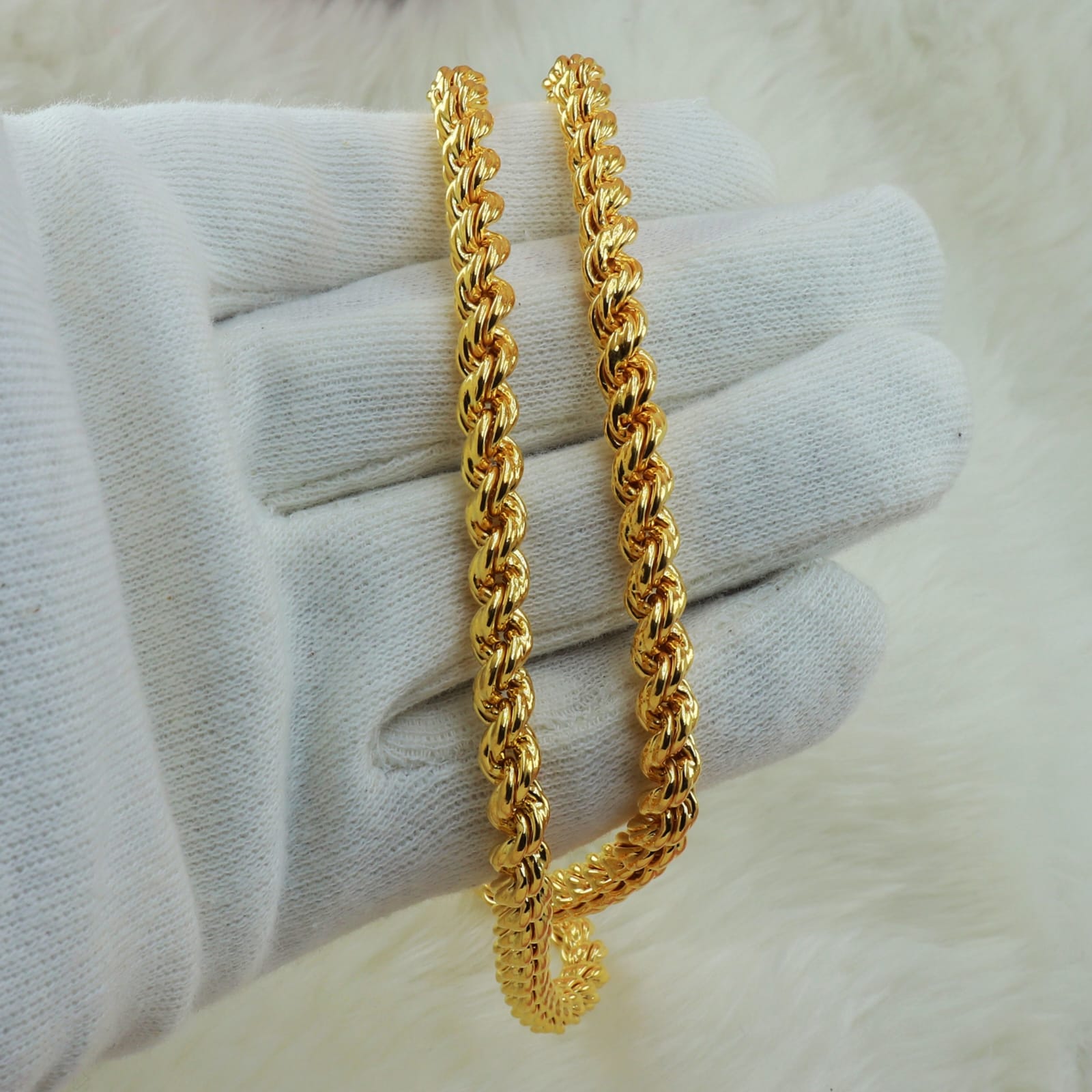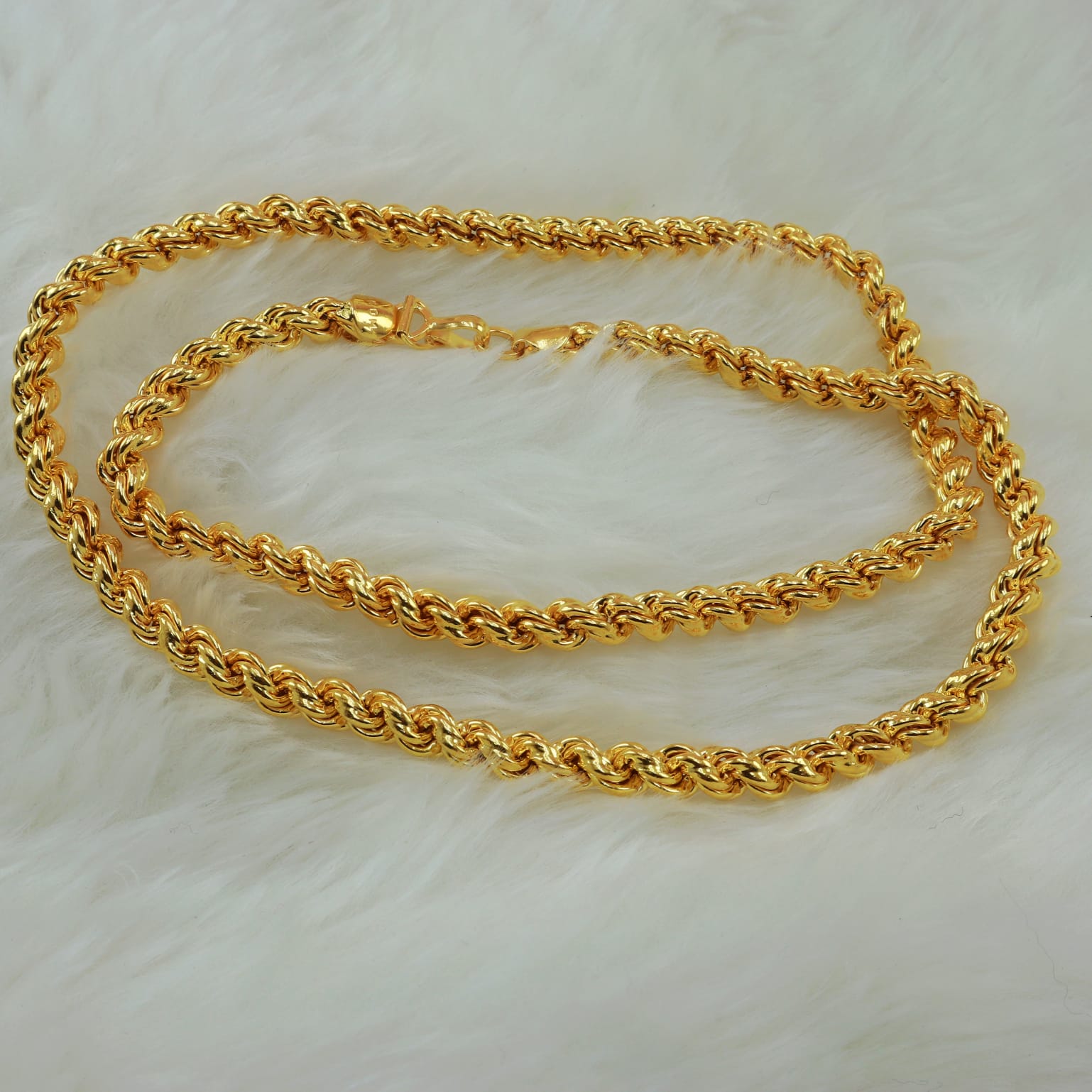 Would you like to adorn yourself with a timeless symbol of elegance and masculinity? Look no further than our 20k yellow-gold chain for men. This chain necklace, with its traditional rope design, is the ideal accessory for daily use because it is sophisticated and charming. This gold chain, measuring 6 mm in width and 20 carats pure, exemplifies fine craftsmanship that endures.